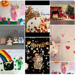 July 10, 2016 Cecile is 9 months old. Hard to believe that she’s been out as long as she was in. One of my favorite summer activities when I was a kid was a family trip to a circus or fair. I used those fond memories to inspire July’s photo- a strong (wo)man walking on a tight rope. This set design was relatively simple compared to some of the previous ones, and Charlotte’s clothes were from Bailey’s Blossoms. Check out their instagram for perfect outfits for your little.